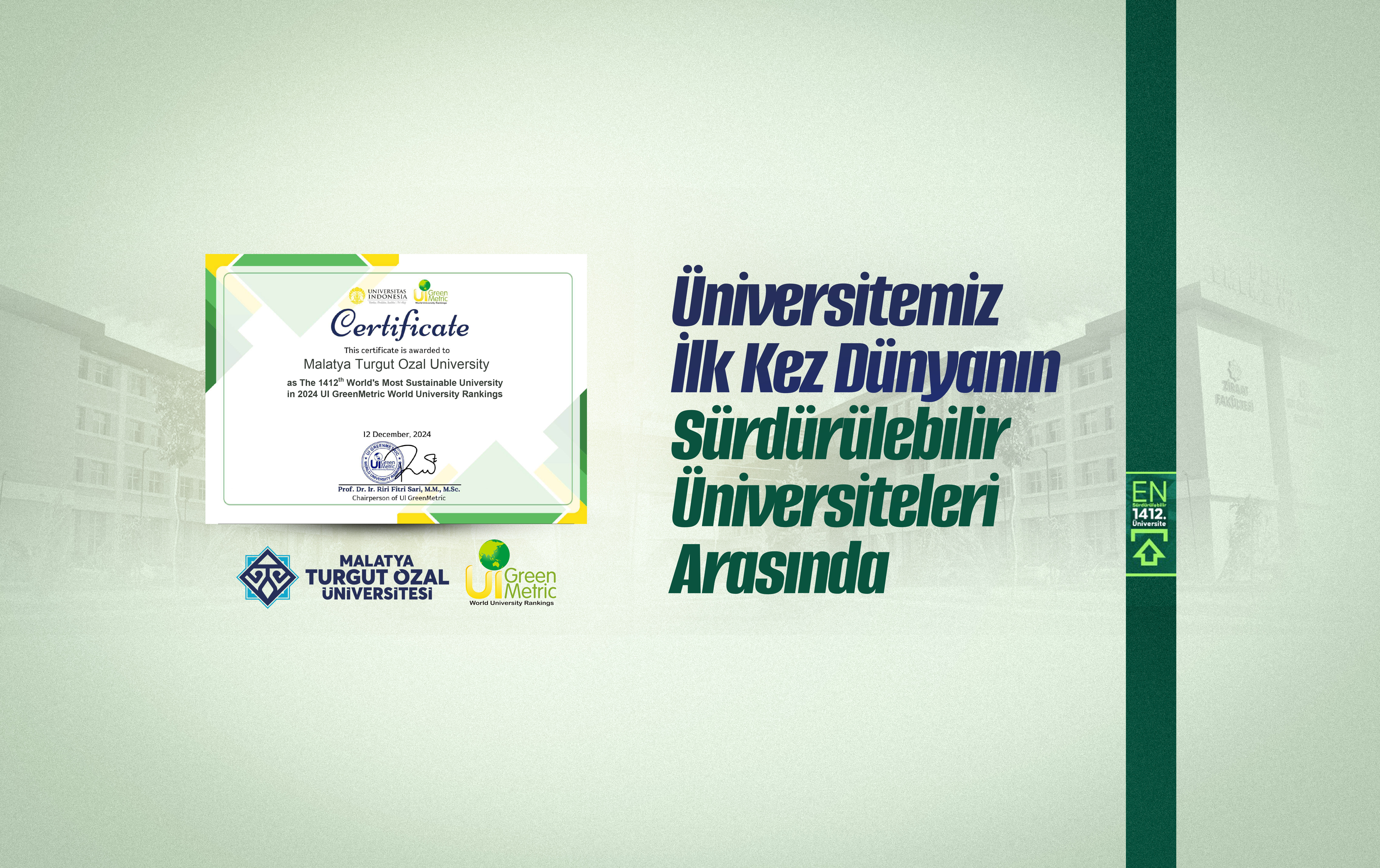 Malatya Turgut Özal University has achieved the distinction of being included for the first time in the UI GreenMetric World University Rankings, which has evaluated universities worldwide since 2010 in the fields of Green Campus and Environmental Sustainability. Our university has been ranked as the 1412th Most Sustainable University in the world. Click HERE to view the ranking.